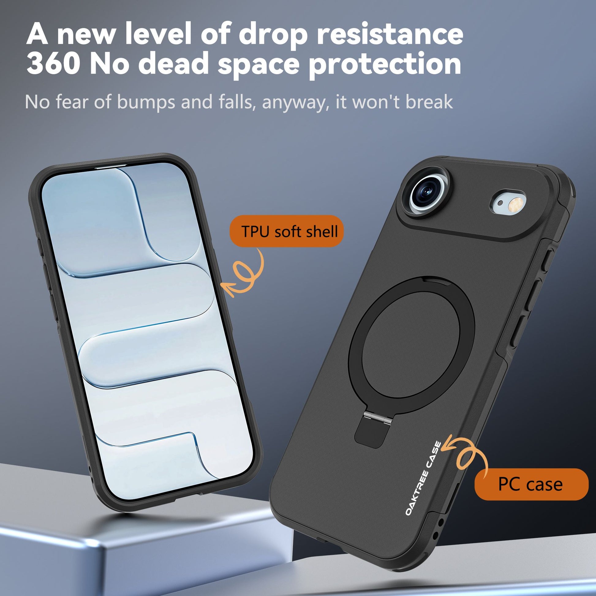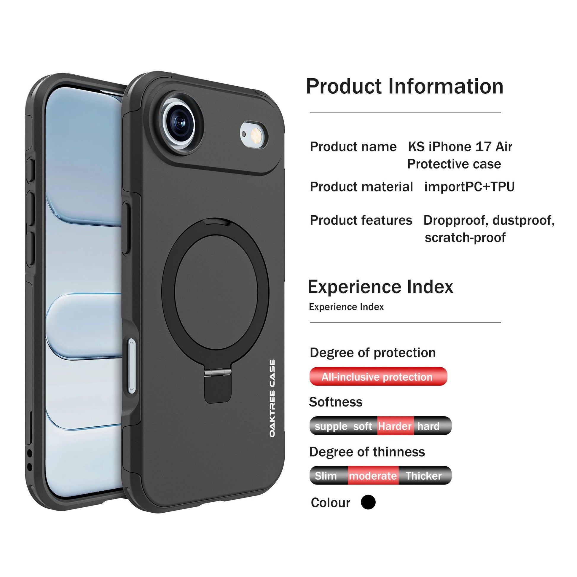 OAKTREE iPhone 17 Air MagSafe Kickstand Ring Case Shockproof Drop-Proof Rugged Case - Black