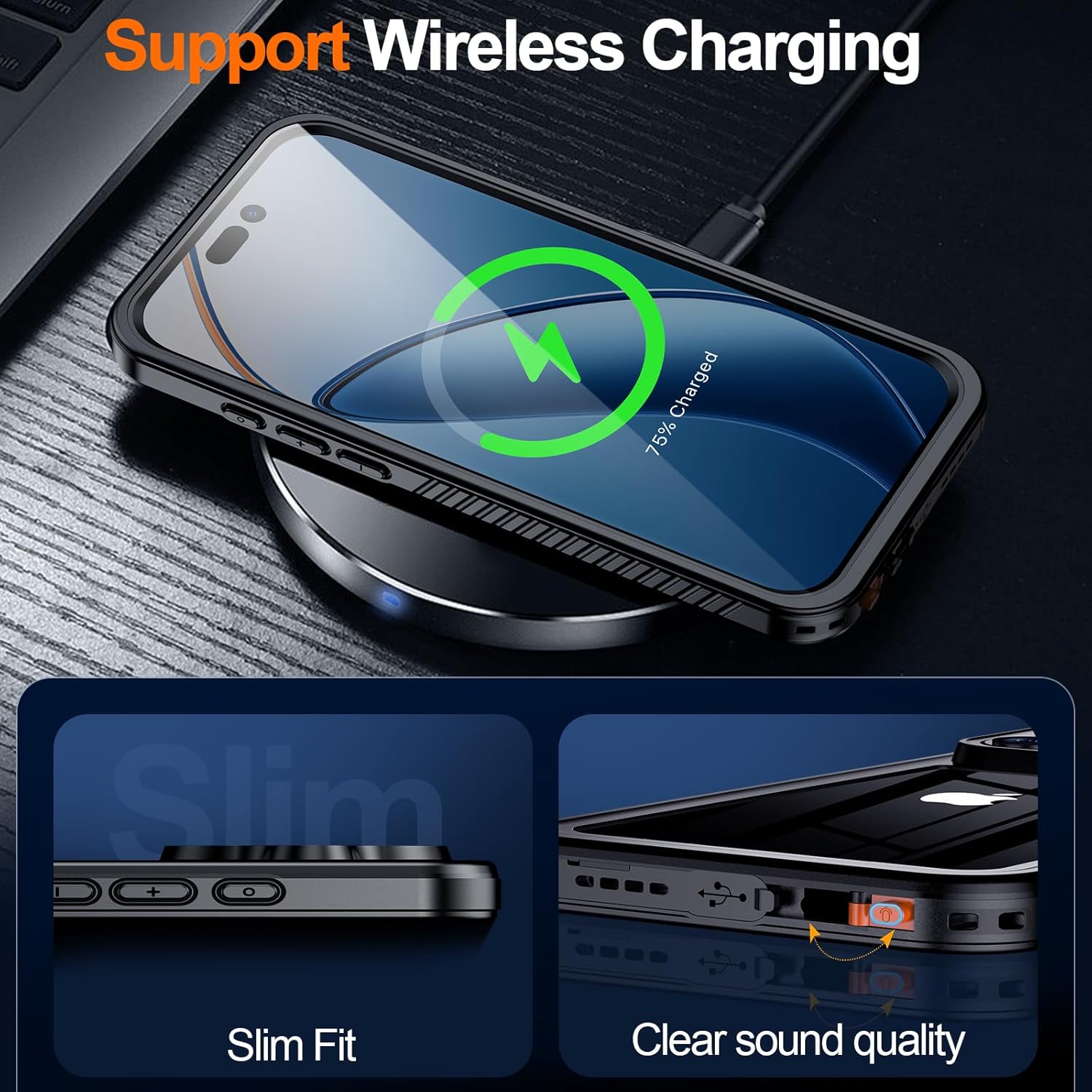 OAKTREE iPhone 13 Pro Max 6.7″ Shockproof Waterproof Full-Body Rugged Case - Black/Clear