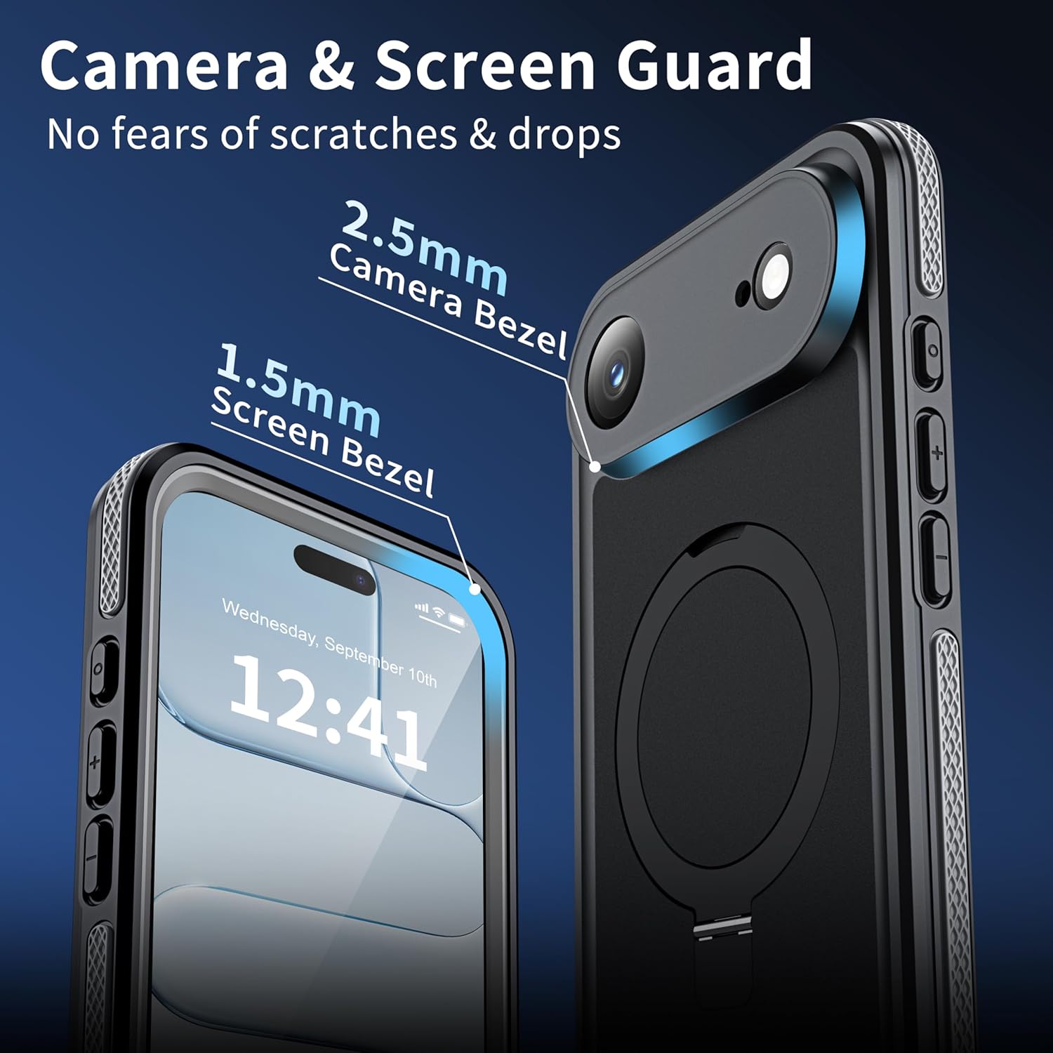 Experience fast magnetic wireless charging and strong MagSafe connection. The integrated ring stand, made from aerospace-grade metal, lets you enjoy hands-free viewing vertically or horizontally — perfect for watching videos, FaceTime, or Zoom meetings.